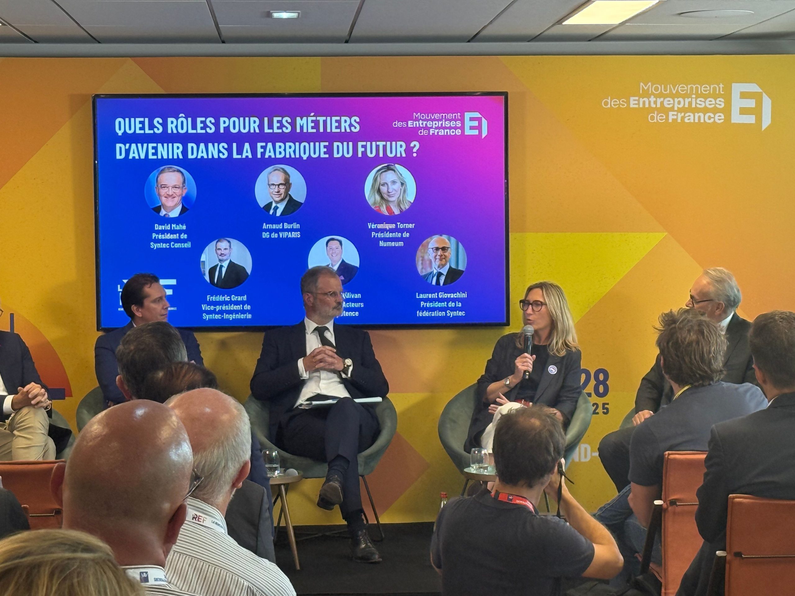 *At the Rencontres des Entrepreneurs de France 2025 (REF), organized by the Mouvement des Entreprises de France (Medef), the round table “What roles for the professions of the future in the factory of the future?” brought together the leading voices from the five member sectors of the Syntec federation (digital, consulting, engineering, events, professional training).